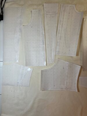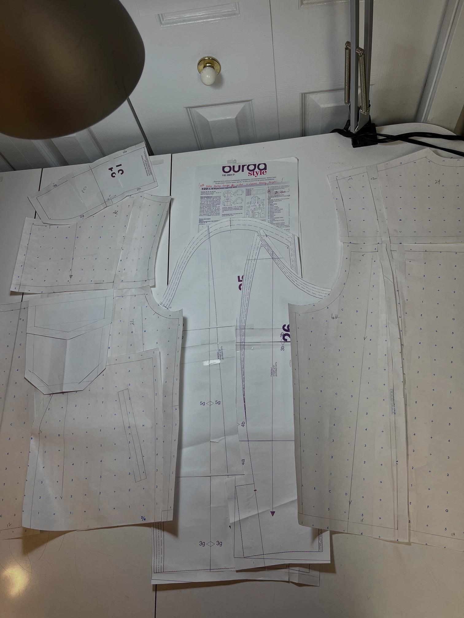 To start, I reused a reliable Burda pattern from a previous project, but heavily adjusted the style lines to match the original high-fashion inspiration. I essentially hacked the pattern to: