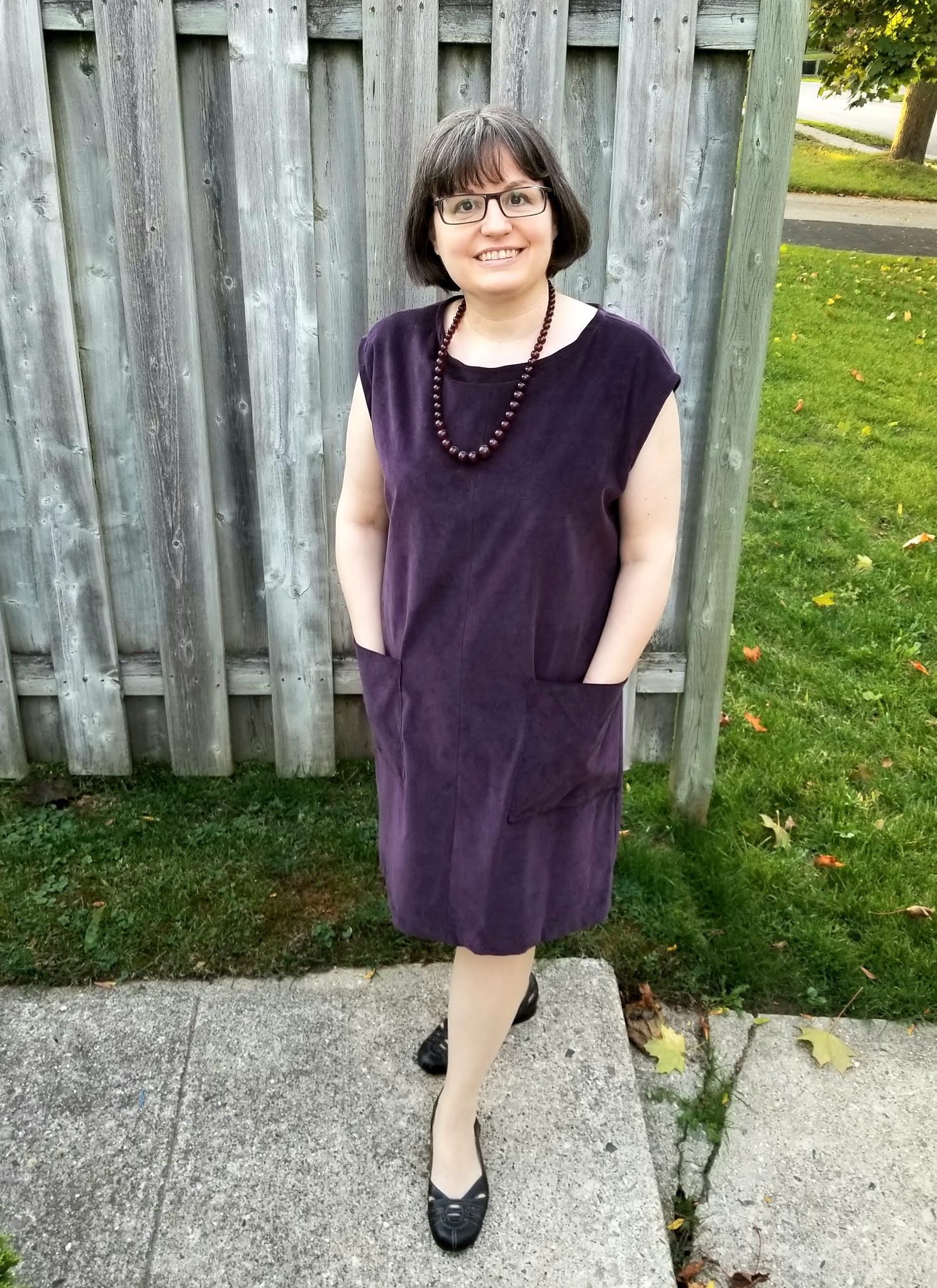 The corduroy is soft and malleable, and was a real pleasure to work with. But as it’s corduroy there is really no drape so I chose to make the straight shift view without sleeve bands. It’s perfect as a straight jumper style dress, with no closures to worry about. And these are the best patch pockets — huge and attached into the side seams as well as being topstitched.