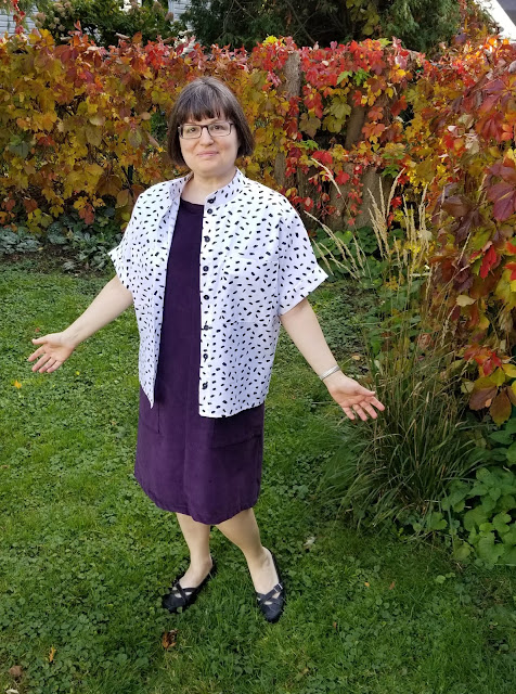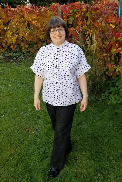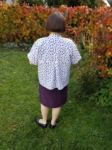 This is an easy pattern and didn’t require many adjustments or fancy sewing. The plackets are folded over, the collar has an interesting method of attachment, the opposite of what I’m used to, attaching it to the inside and flipping it out to topstitch from the right side. There’s also a nice low, curved back seam and pleat on the lower half of the back. Because of this extra ease, you don’t need to grade between sizes even if you usually do, there’s plenty of room as drafted. I’d usually do an X/Y or even a W/Y blend on some Jalies but this one was perfect as it was.