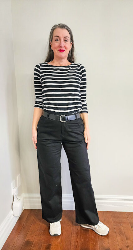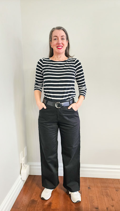 Coudre son propre jean peut être un projet extrêmement satisfaisant, et le patron Know Me ME2052 est une perle rare pour tous ceux qui souhaitent créer un jean droit parfaitement ajusté. Confectionné dans un tissu en twill noir, ce jean offre non seulement un look contemporain, mais garantit également confort et polyvalence.