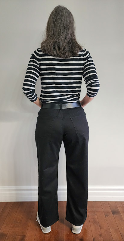 Le patron propose des poches arrière de forme arrondie. J’ai choisi d’utiliser un patron classique de poche arrière provenant de ma collection de patrons. J’ai omis les grands empiècements avant et arrière afin d’alléger ce jean (le twill 12 oz est déjà assez épais).